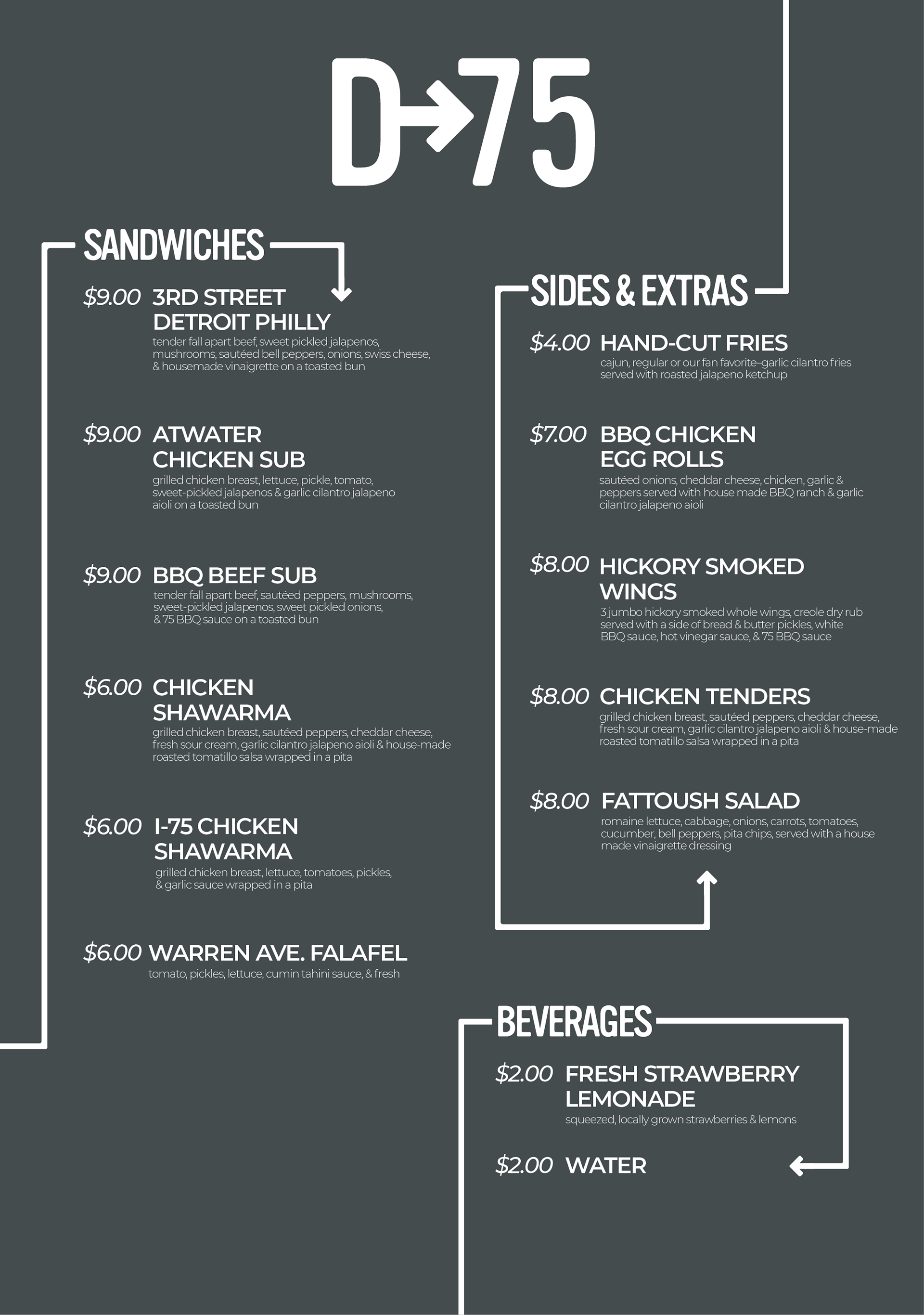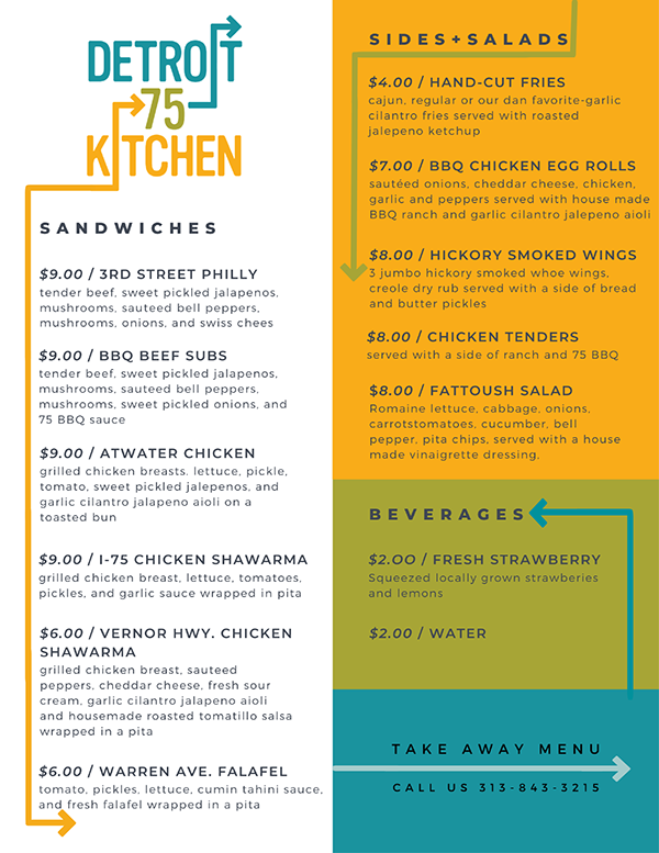 This project features a collaborative project I did with a classmate focuses on the re-make of the existing identity of the food-truck Detroit 75 Kitchen.
